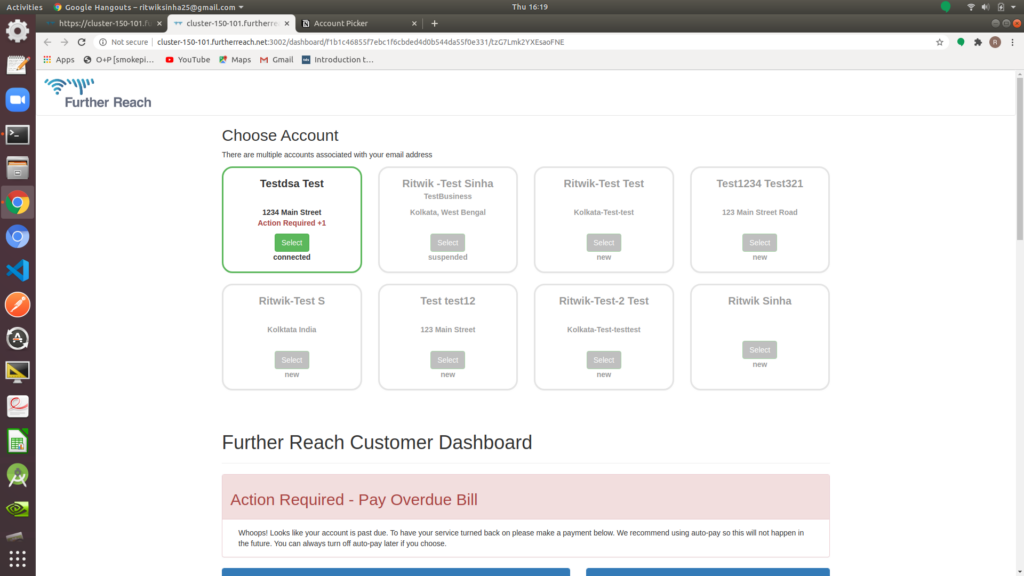 Switch between accounts: If you have more than one Further Reach account, the portal shows each account as a separate card. Just click the one you want to manage.